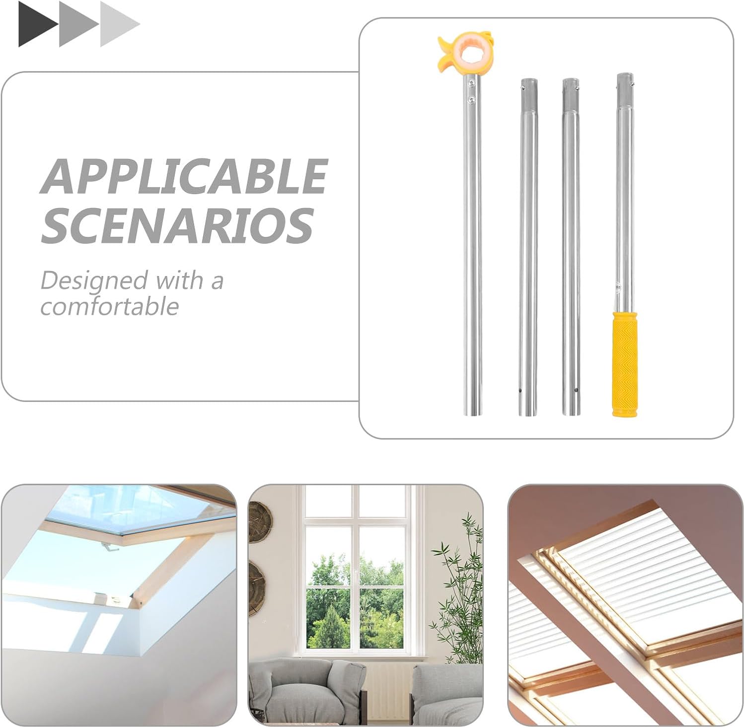 DescriptionThe Telescopic Awning Opener Is Expertly Crafted For Easy Adjustment Of Awning Windows, Skylights, And High Windows In Bedrooms, Kitchens, And Offices. Its Lightweight, Non-Slip Grip Design Meets Diverse Needs, Making Window Opening, Closing, Or Blind Control Safe And Accessible For Everyone, Especially The Elderly.Features-Color:Yellow-Material:Metal + Plastic-Size:152.00X6.50X2.00cm/59.84X2.56X0.79in-MultiScene Compatibility: The Adjustable Height Pole Is Perfect For Use In Bedrooms, Living Rooms, Kitchens, And Even Schools, Making It An Essential Window Opener Pole For A Variety Of Daily Tasks-UserCentered Grip: Designed With A Comfortable, Antislip Handle, This Window Opener Stick Ensures Stability And Ease When Using The Window Reach Rod For High Windows Or Skylights-Lightweight & : Made From Premium Lightweight Materials, The Telescopic Window Rod Remains Robust And Easy To Maneuver, Providing Effortless Window Opening Assist At Any Height- : The Adjustable Skylight Rod Is Ideal For Elderly Family Members, Eliminating The Need To Climb Ladders When Using The Long Telescopic Rod For Hardtoreach Windows-Boost Maintenance Efficiency: Office And School Maintenance Teams Can Rely On The Telescopic Window Tool To Conveniently Control Awning Windows Or Perform Routine Checks On High Fixtures