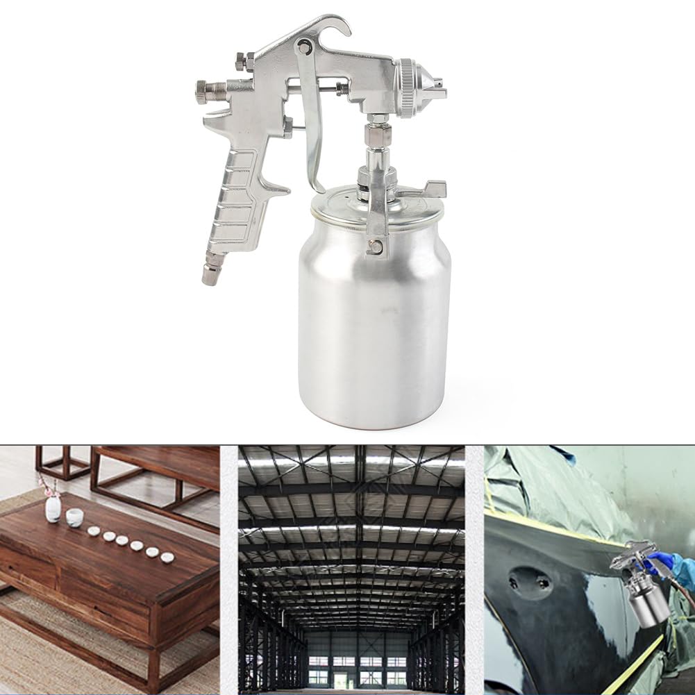 Fitment:Widely Use:Designed for the DIY experience and can be used for any painting project, such as vehicles, furniture, walls, blinds, fences, instruments and meters, etc.Scope of Application:Machinery/Decoration/Industry., please kindly check our item description, photos and sizes are consistent with your needs.Specification:Condition:Brand NewMaterial:Aluminium Alloy+Stainless Steel(Nozzle)Surface Finish:PlatingFeeding Mode:Suction TypeSeries:PQ-2;Color:Silver;Nozzle Size:2mm;Spray Range:15-20cm;Cup Capacity:1000ml/34 ounceFeatures:1. The suction feed design maximizes paint use, leading to less minimal waste.2. Intake pressure free adjustment, fine particles of atomization, uniform coating.3. Separate and adjustable fluid and fan design reduces over spray, allows you to spray larger surfaces without having to stop.4. Holding spray at any angle with various fill levels while maintaining proper suction and without spilling paint from canister.Easy performance:Rotate the spray range valve and spray fluid valve to adjust the spray mode, fluid control and air pressure5. It is mainly used for the spraying treatment of the surface finish of fine materials such as automobiles, home appliances, and furniture.The nozzle is made of wear-resistant, high-strength stainless steel, and the nozzle can be removed for cleaning and maintenanceDescription:3. All dimensions are measured by hand, there may be small deviations.1 x Sprayer Set;1 x Extra Spanner;1 x Cleaning Brush;1 x Manual