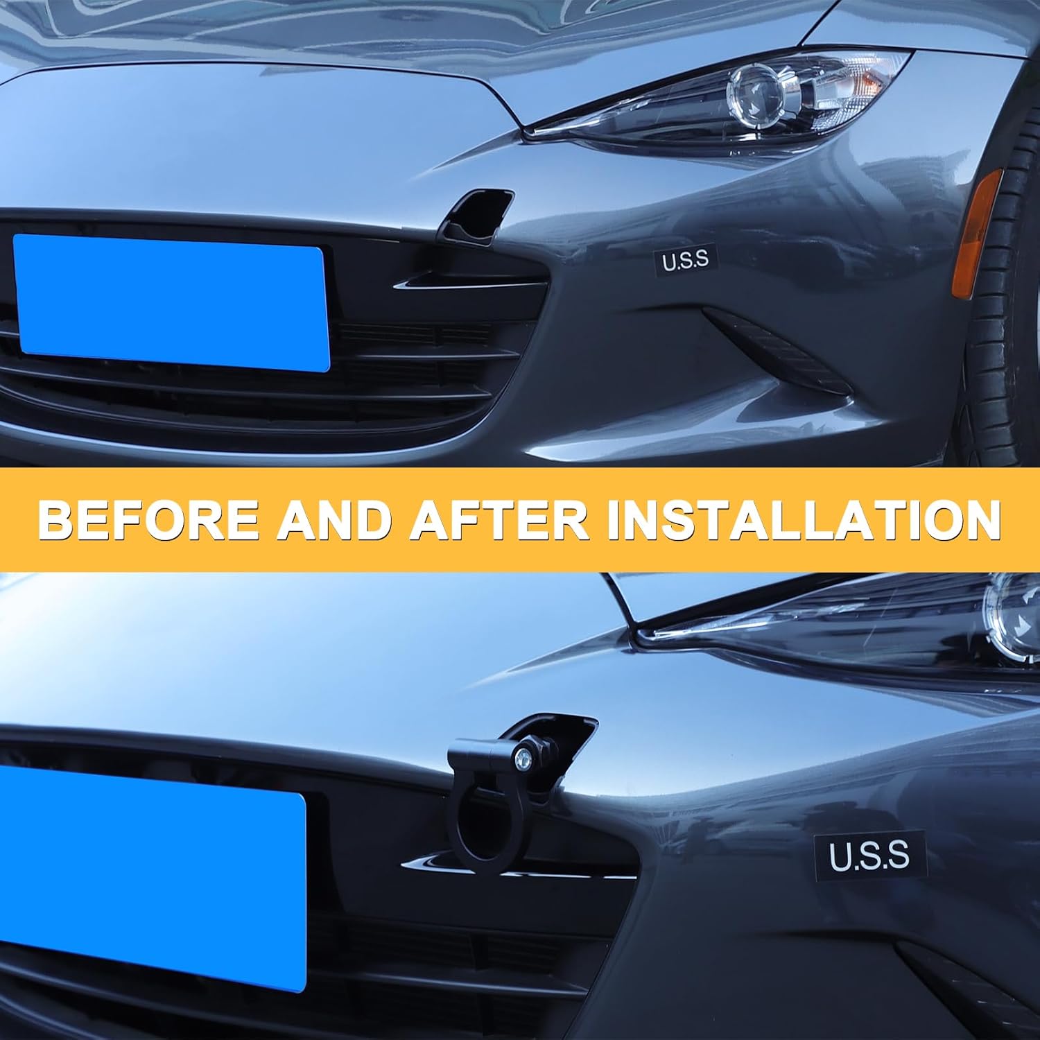 Track Racing Style Tow Hook Ring Automobile Modification Towing Connection Accessories Condition: 100% Brand New Tow Hook Towing Eye Aluminum Screw On Front Rear Bumper Product features: Light weight, Durable, Scratch-resistant, Easy to install Fitment: - Racing Style Front Rear Bumper Trailer Ring Red Towing Tow Hook fit for Mazda MX-5 Miata 2016+ Material:Lights Cover Reversing Lamp Protection Made of Aluminum alloy Package Include: 2 PCS Aluminum Alloy Vehicle Bumper Screw-in Pull Ring Any quetion about installation, please feel free contact us. NOTES: Please check whether this item can fit on your car before purchasing Installation tip: remove the front or rear bumper hitch/tow eye cap cover, screw lock in the towbar, attach/mount with the ring/hook/strap, tighten the nut between the rod and the ring/hook/strap to adjust positioning, and use the Hex L-key to arrow it down so it won't swivel and hit the grille or bumper during driving