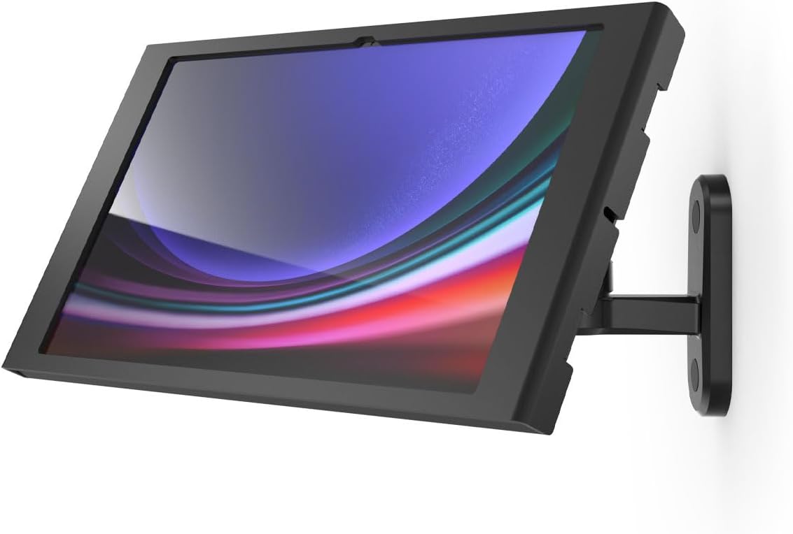 Enhance your business or professional environment with the Compulocks Galaxy Tab Apex Enclosure Swing Wall Mount, designed specifically for Galaxy Tab A9 Plus | 11"| 2023 | SM-X210, SM-X215, SM-X216B. This commercial-grade tablet wall mount combines a sleek, lockable metal enclosure with a flexible swing arm that offers full tilt, pan, and swing movement for optimal viewing and interaction.The Apex Enclosure securely houses the Galaxy Tab, while ensuring full access to the front and rear cameras and all critical sensors. Whether for video conferencing, barcode scanning, or interactive digital signage, users can rely on uninterrupted functionality. The quick-keyed access system allows for fast tablet maintenance without dismantling the mount—ideal for dynamic settings like retail, exhibitions, offices, or business events.With its short swing arm, this tablet wall stand delivers unmatched flexibility for positioning and engagement. The integrated cable management keeps the setup clean and organized, making it a perfect solution for customer-facing environments where security, accessibility, and sleek presentation are top priorities.