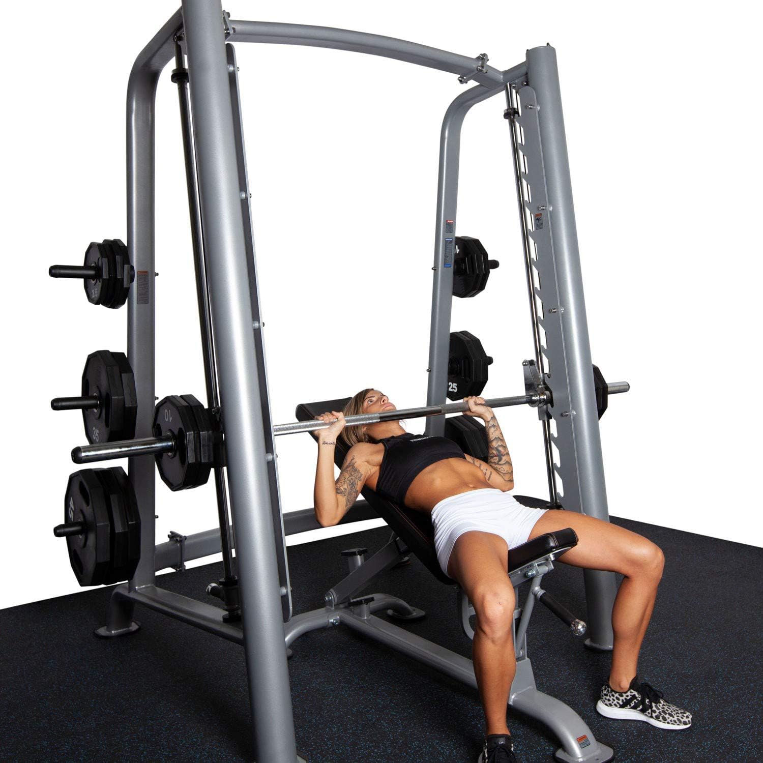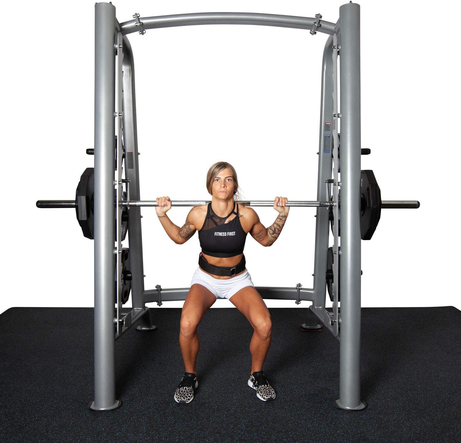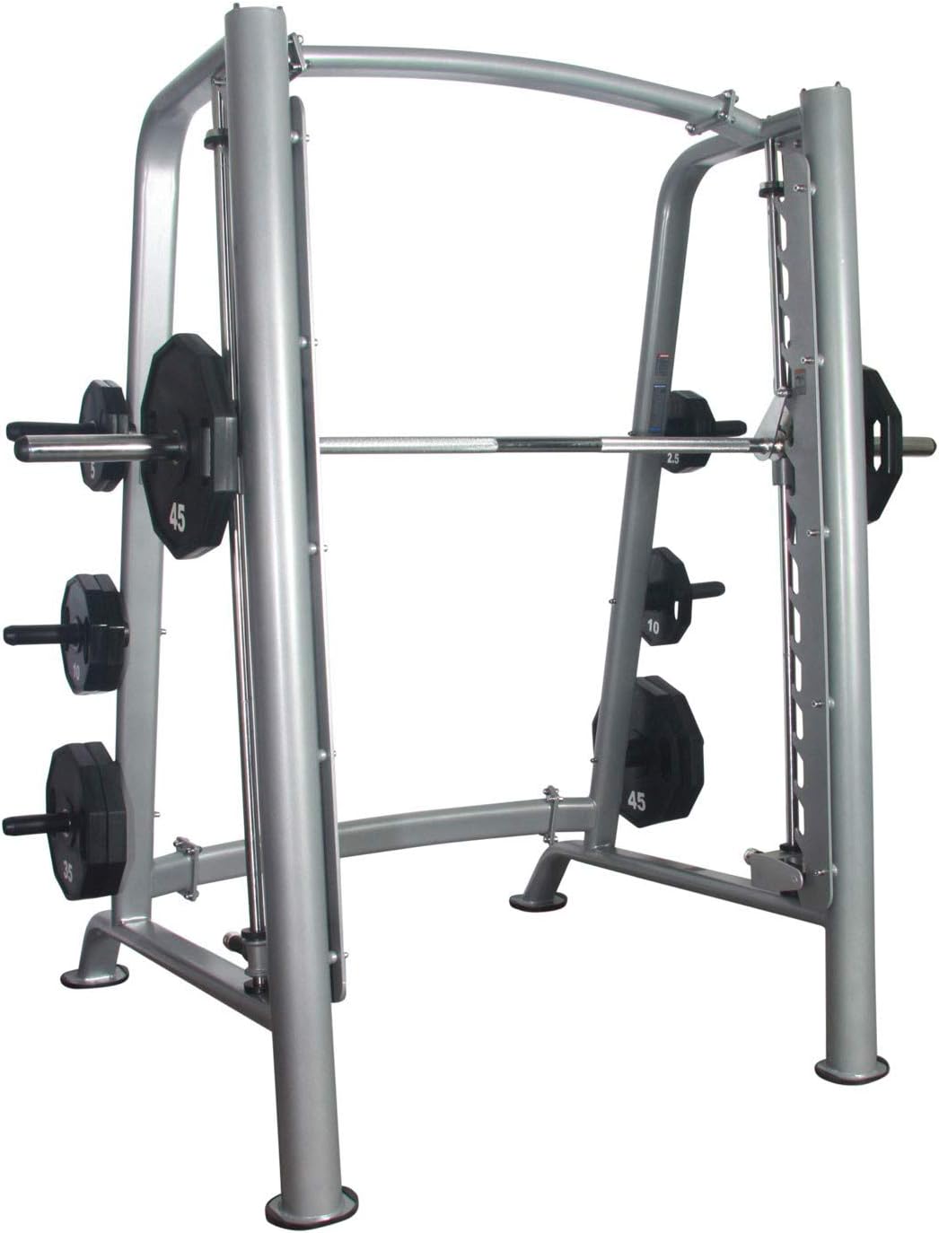 The Fitness First Smith Machine affords you the opportunity to get an intense, full-body workout in the convenience of your own home. It features a variety of strength-training tools which are ideal for helping you work toward the body you desire. Its pieces work a myriad of muscle groups. It comes equipped with seven major training stations to really build your arms, legs and core. This also allows you to set up a rotating training regimen so you will steadily build muscle and avoid overworking yourself. Further, when you're finished with your workout, if you have weight plates, you can keep them organized and out of the way with the integrated weight plate storage. Olympic free-weight rack Features an "off the floor" base frame Tubular steel with powder coat finish Attached bar with multi-level squat rack