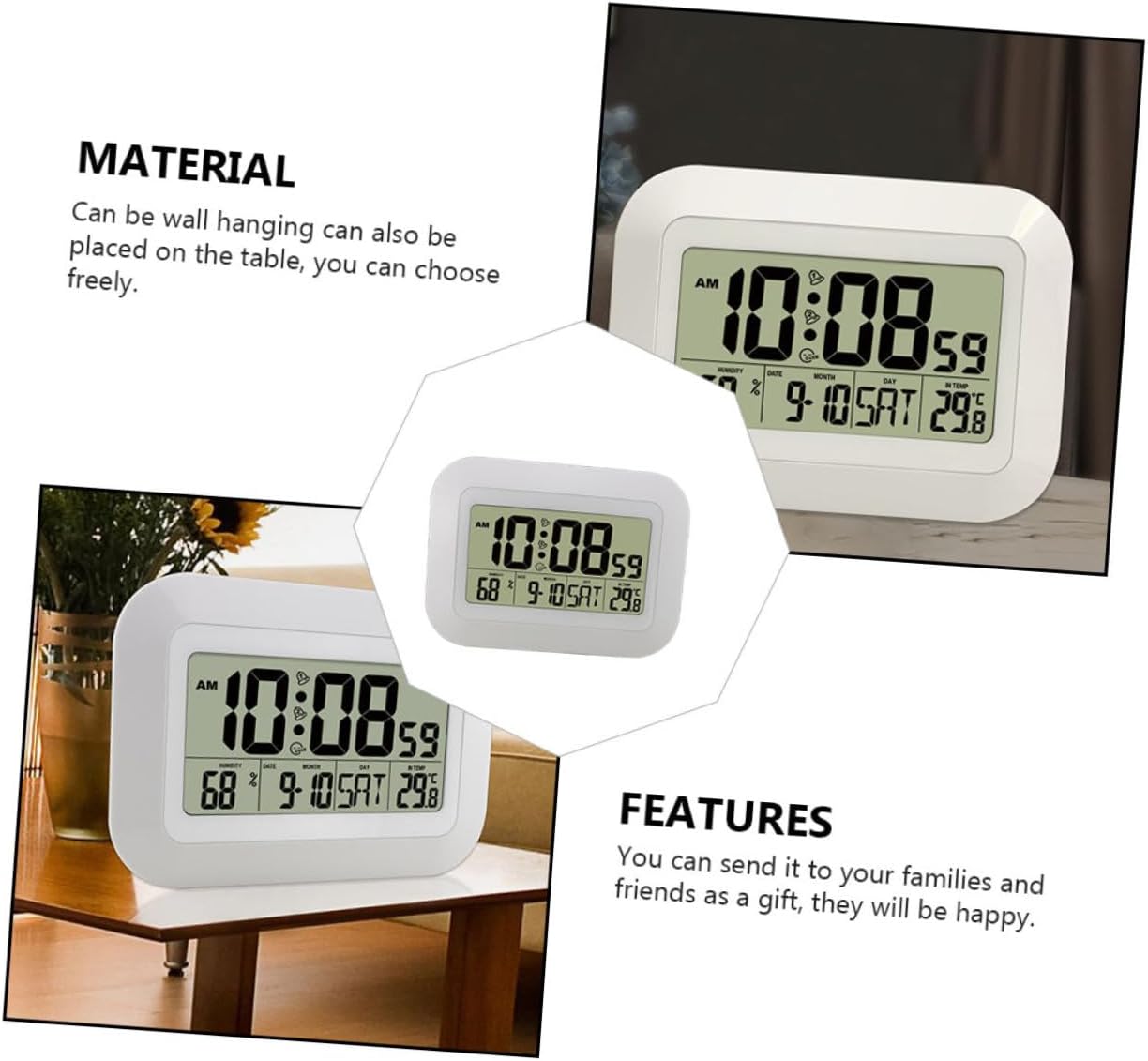 Package List 1 x Electronic Alarm Clock Characteristics - Material: ABS - Color: White -Product Info:Electronic alarm clock - Battery: 2 x AAA (Not included) bedside digital clock - Size: About 24.90X18.30X2.30cm/9.79X7.19X0.90inch - The alarm clock do not disturb your rest, give you a quiet . You can use it without worry clock decor. - This digital clock is very suitable for bedroom, living room, study room, or outdoor use timekeeping device. - Fashionable and generous product appearance and very practical design wall hanging digital clock. - Automatically detect the ambient temperature. It can offer you a good life experience multi function alarm clock. - The clock is light and compact, easy to use and portable to Table Type Clock.Goods Descriptiondecorative digital clock Featured by simple and delicate design, it can not only show the time, but also be an excellent decoration for any room.Home Alarm Clock The digital clock is a good companion for late sleep.Table Type Clock Stylish design and superb workmanship make it stand out on your bedside table