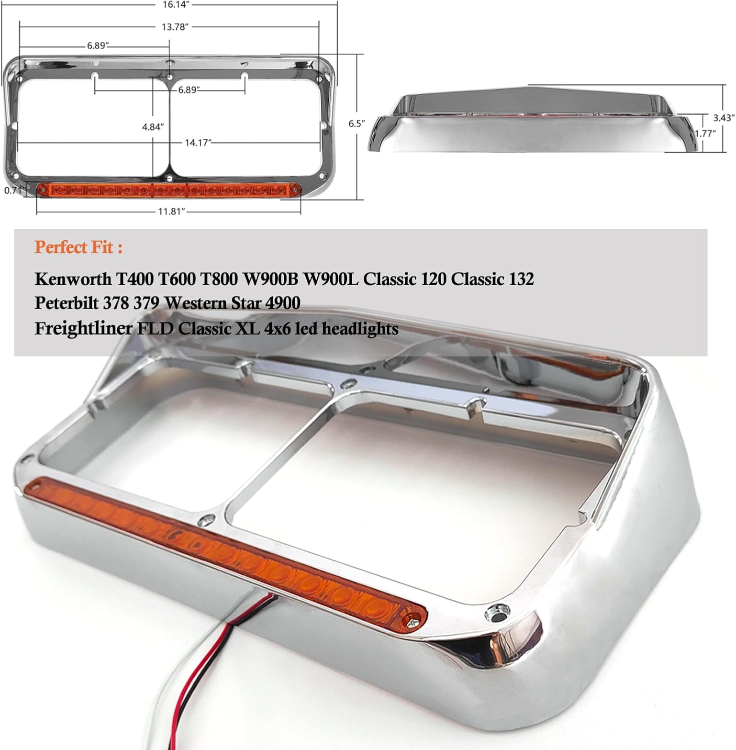 | Included Components | Headlight Bezel with Amber LED Light Strip |