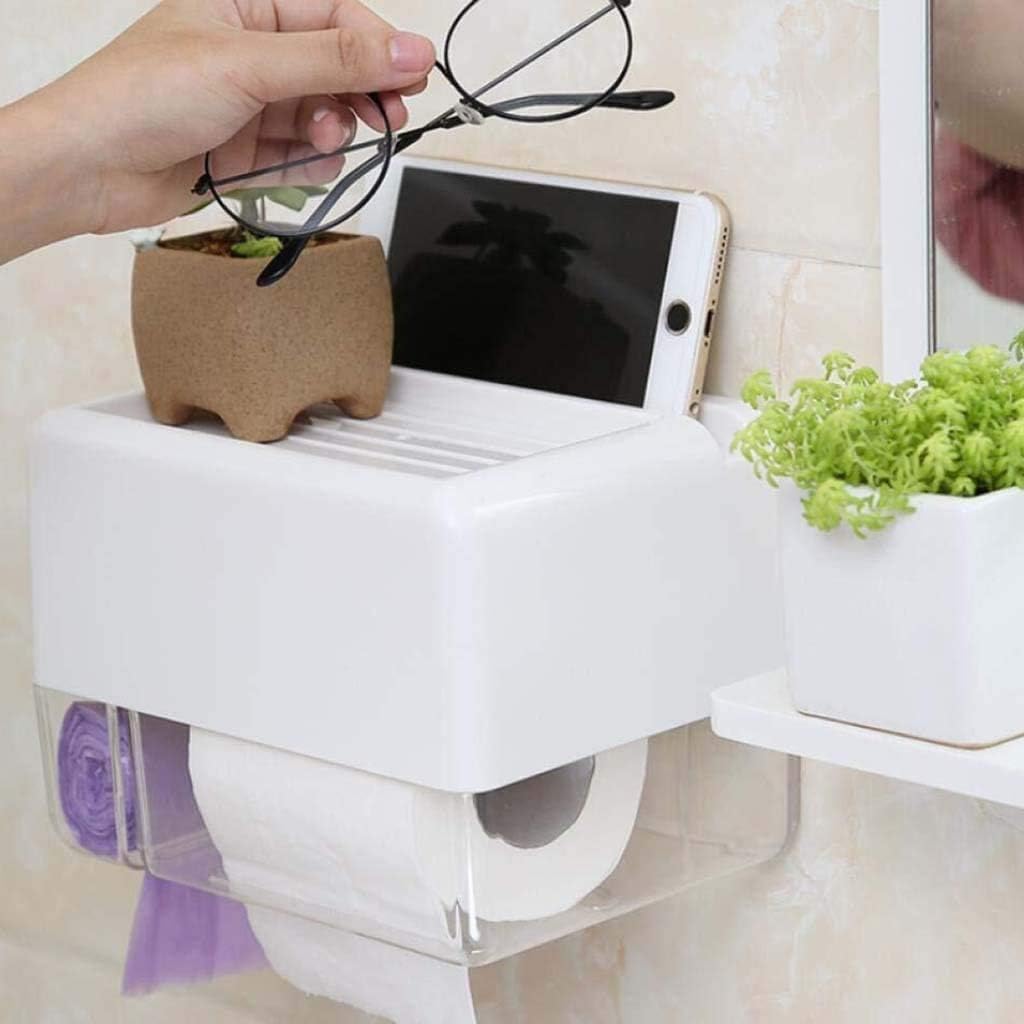 : Toilet paper holderProduct material: ABSProduct shape: rectangleEasy to install This self-adhesive toilet paper holder is easy to install and does not need to be drilled on walls, attached to walls, doors, glass and ceramics.Color: transparentWall mount design adds to your space,a great addition to any bathroom, seamless welding, exquisite workmanship, no fading.Multi-purpose:The Slim toilet paper basket can also store toilet paper, towels, bathroom accessories, etc. It has a large storage space and does not take up space. It can be placed in different locations such as the bathroom, next to the toilet, and sink.