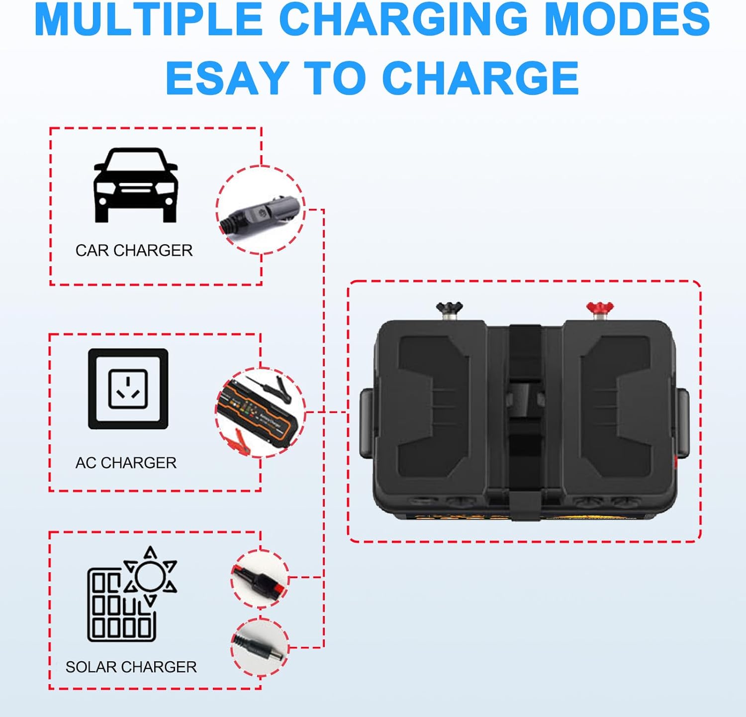 PB003 is a great product that can meet your multiple needs. Whether you are camping, fishing, or engaging in other outdoor activities, it can provide you with a safe and stable power source. Battery Box has 50A Anderson Input/Output Plug can be used for solar panel, it can maximizing protect your device and other accessories from electrical damage. And you can carry it with you when using ships or RVs outdoors, solving your outdoor electricity problems. Battery Box provides dual 5V/1A & 5V/2.1A USB ports and two 12V accessory ports, it can be used to recharge mobile phone/tablets and car electrical equipment/portable refrigerator/camping lights. Battery Box has emergency lighting, which can be used for displaying battery voltage. This makes us feel more at ease when playing in the outdoor activities. Believe me, choosing our product won't make you regret it.