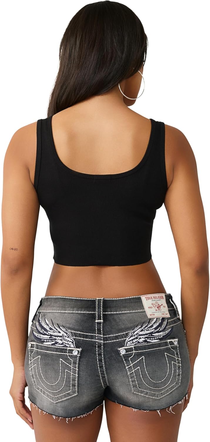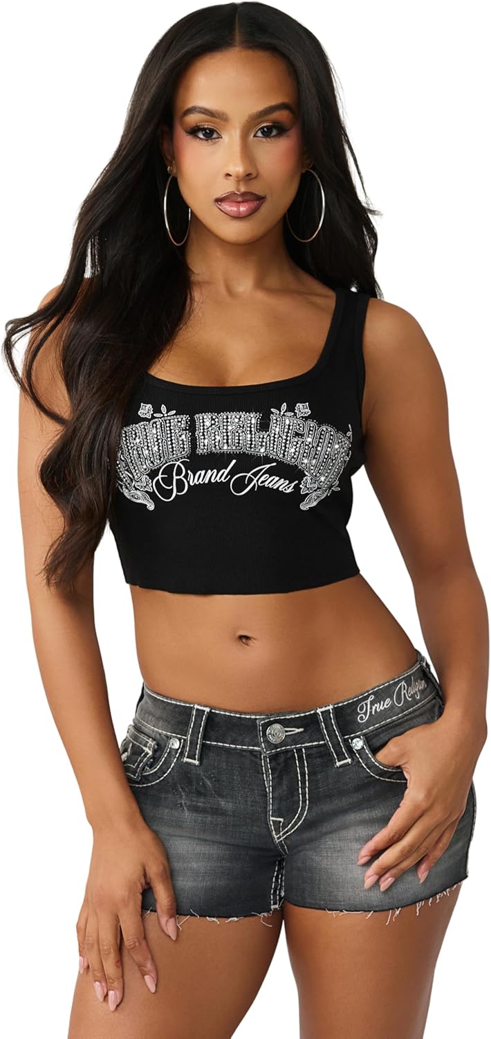 The Crystal Bandanna Rib Tank brings shimmering True Religion style to a flattering, warm-weather essential made for confident, expressive women. Crafted from a soft ribbed knit blend, this tank delivers breathable comfort, lightweight stretch, and a body-skimming fit that moves easily throughout the day. Designed with a scoop neckline and racerback silhouette, it creates a sleek, athletic-inspired shape that’s both flattering and versatile. Crystal-outlined True Religion branding on the front adds standout sparkle and signature brand identity. Perfect for styling with denim, shorts, maxi skirts, or layered looks, this tank transitions seamlessly from day to night. Whether worn for beach days, workouts, concerts, weekend outings, or casual layering, the Crystal Bandanna Rib Tank delivers premium comfort, modern versatility, and confident True Religion attitude for every occasion.