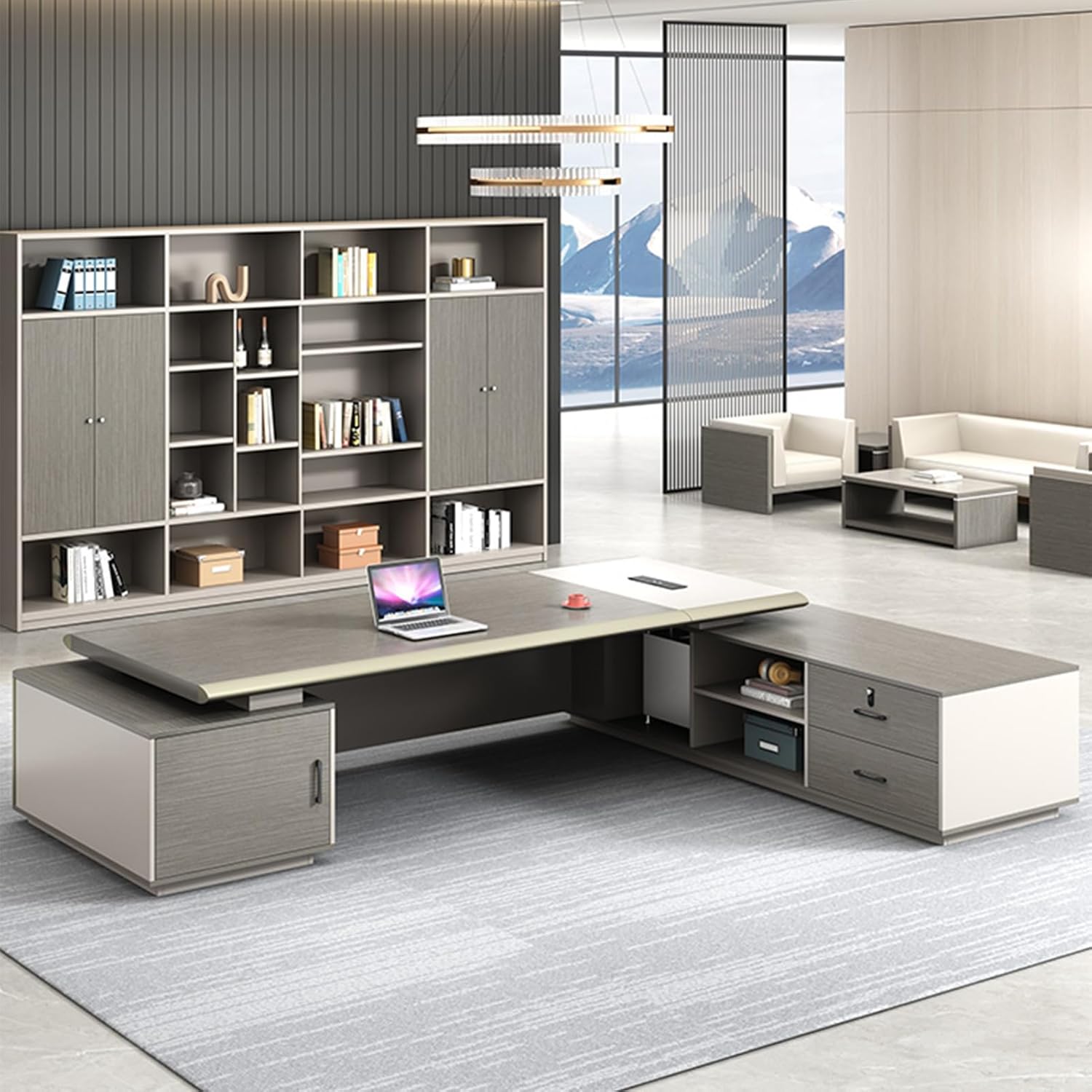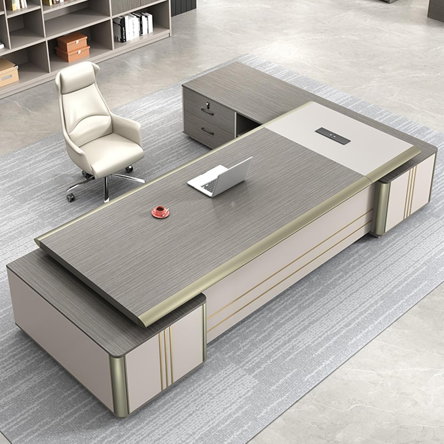 Specifications:Shape: L-shapedType: L-shaped deskMaterial: Wood, MetalDimensions: 94"L x 71" W x 29.5"H;Drawer: YesPower socket: YesSide cabinet direction: Left, RightApplicable places: Home, OfficeSide cabinet direction: L: Left; R: RightPackage includes:Desk x 1Installation accessories x 1