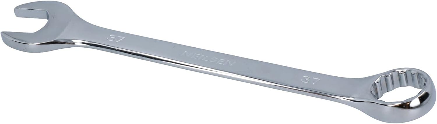 Professional jumbo spanner for commercial or occasional use 37mm metric spanner Jumbo / large metric spanner Metric spanner Suitable for heavy industry, agriculture hub nuts and many more Combination style spanner so one end is open and the other is an enclosed ring spanner 15 degree angle on the spanner to allow for when extra leverage is required in tight confined spaces Manufactured from C R v steel for maximum strength and durability Extra long spanners for when extra leverage is required SPECIFICATIONS Combination spanner Metric spanner 37mm metric spanner Total length – 390mm 15 degree angle on the spanner 12 sided / Bi-hex ring spanner Total weight – 925 grams