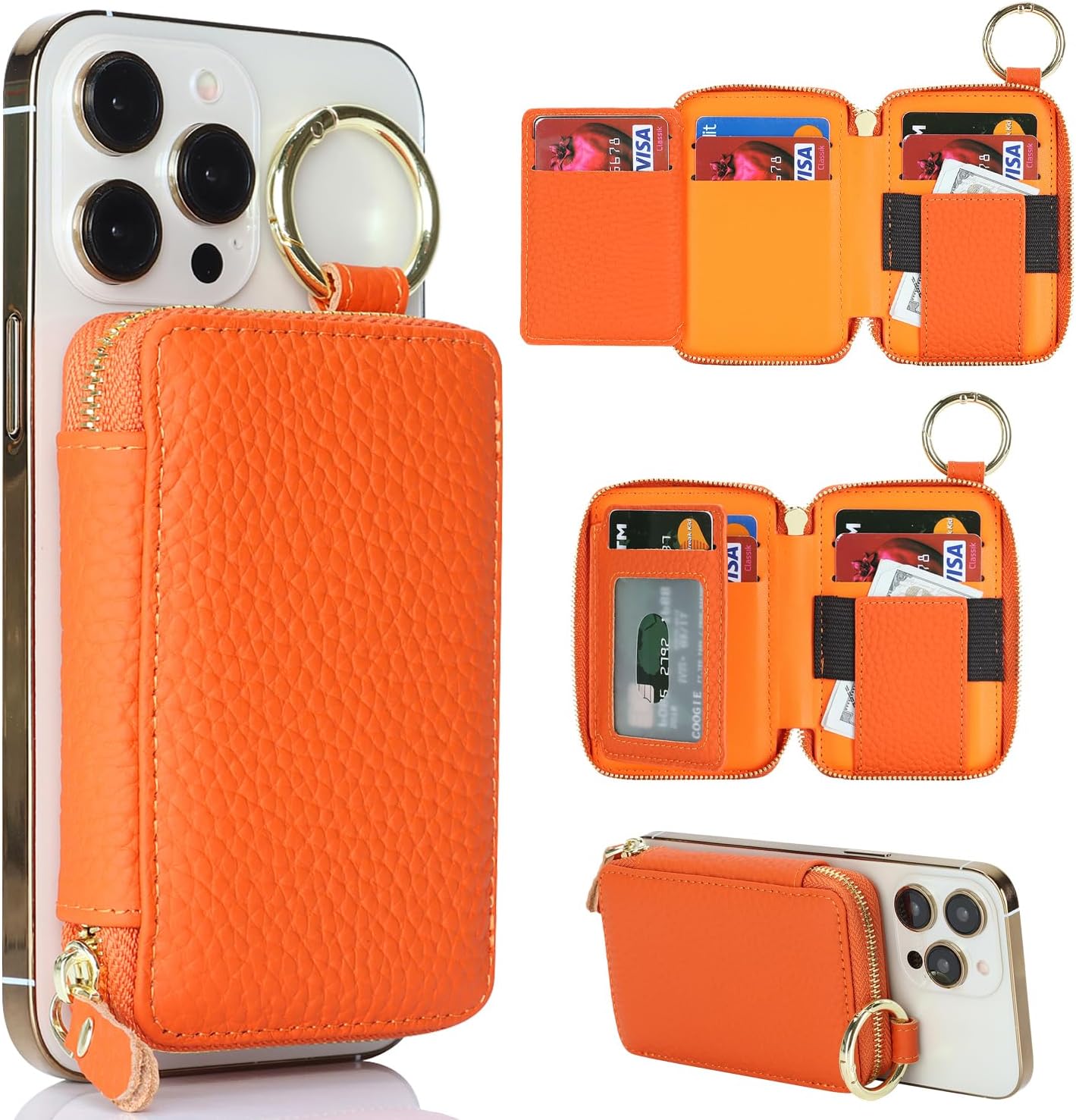 Cavor Compatible with MagSafe Wallet,Genuine Leather Magnetic Wallet for iPhone 17/16 Pro Max/15 Pro/14 Plus/13/12 Series,Magnetic Card Holder with Adjustable Stand,Mag safe Phone Card Holder-Blue