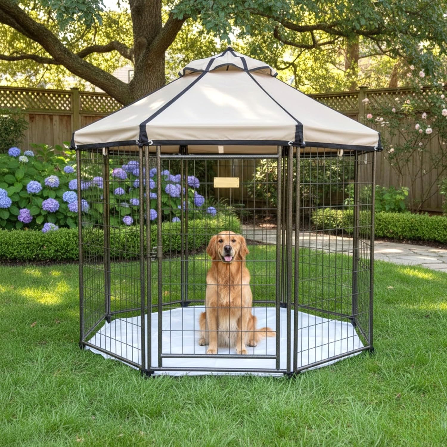 Upgrade your outdoor space with Garden Winds replacement canopy top, custom-designed for the Advantek, The Pet Gazebo 5 Foot Portable Pet Dog Gazebo Kennel Playpen sold at Tractor Supply Co, Amazon and various retailers. Made from durable 350 Denier Polyester with Riplock Technology, this canopy features reinforced gridlines to resist tearing, UPF 50+ UV protection, and a water-resistant coating for reliable all-weather performance. Color: Classic Sand Beige (different from original). It's also CPAI-84 fire-retardant compliant, for added protection. Guaranteed to fit model number: 23403, 23404, 23405. SKU: 145694799. ASIN: B0076DLUHQ. - please verify your kennel's model before ordering. Canopy top only; frame not included.
