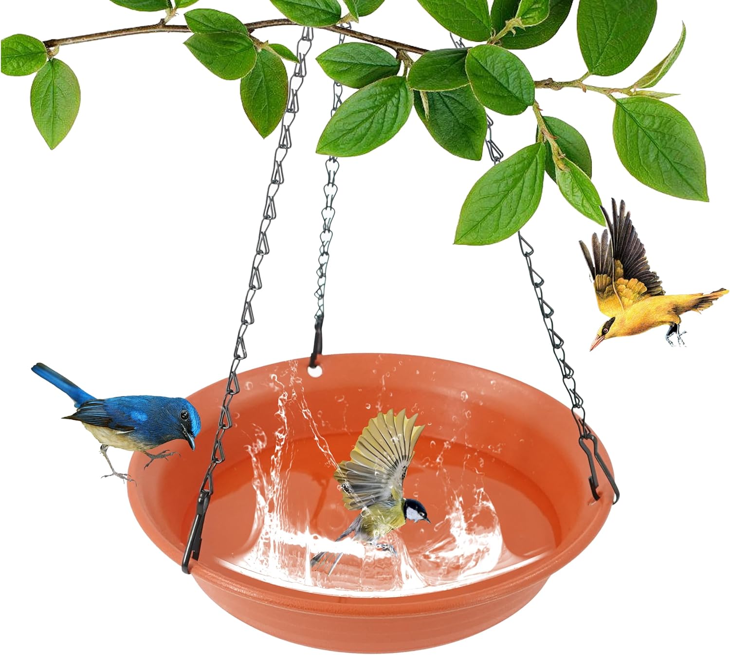 VUWEZ Hanging Bird Bath, 1 Pack Hanging Bird Feeder For Outdoors, Bird Water Feeder Tray Bowl Accessories For Outside, Plastic Birdbaths Tray For Garden Patio Decoration (14", Chocolate)